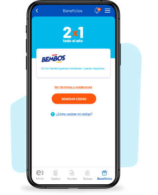 Ve a la sección Beneficios de la app Mi Entel Perú y selecciona el beneficio Bembos 2x1 y genera tu código.