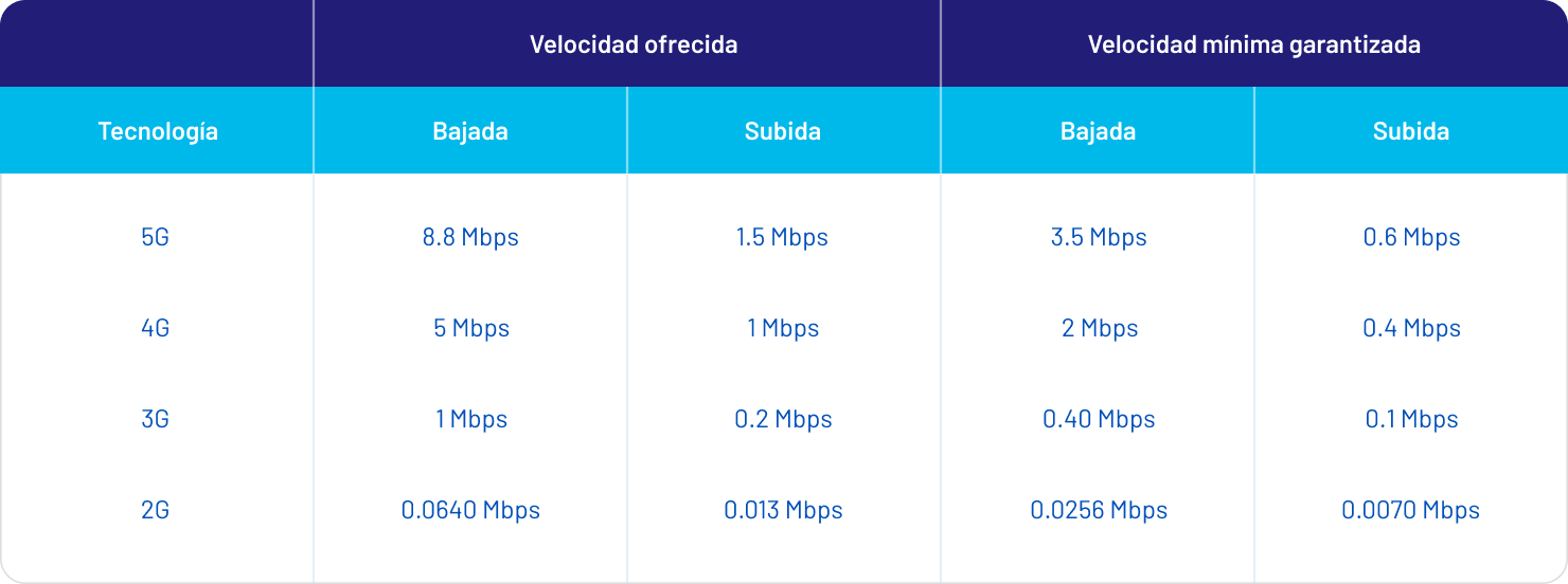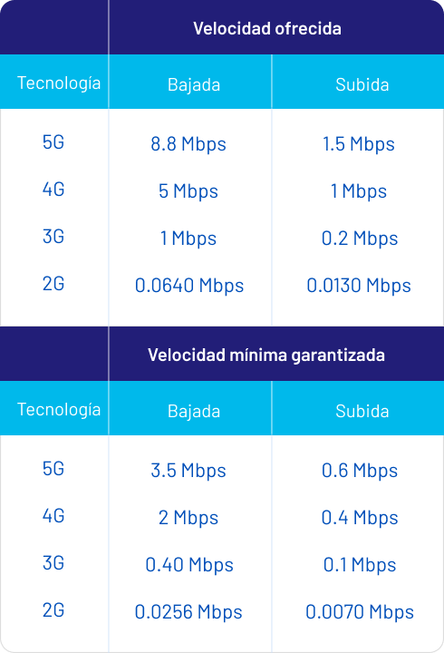 El cliente podrá navegar en las siguientes velocidades según cobertura: